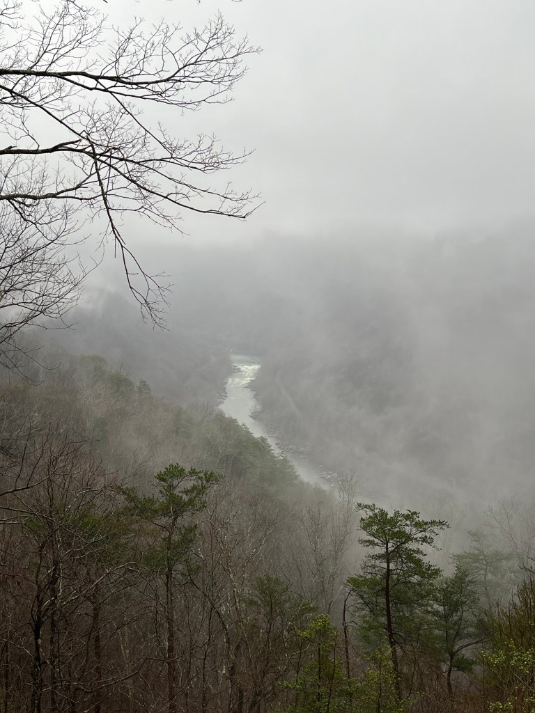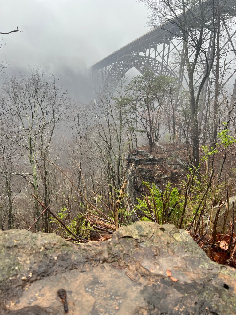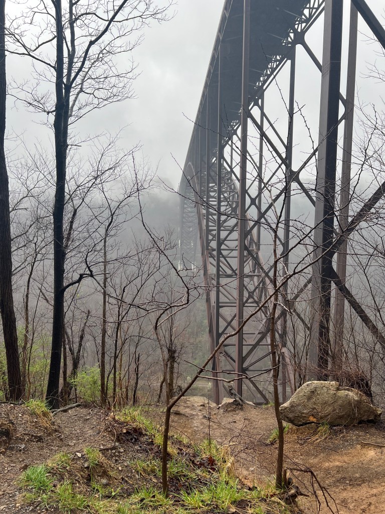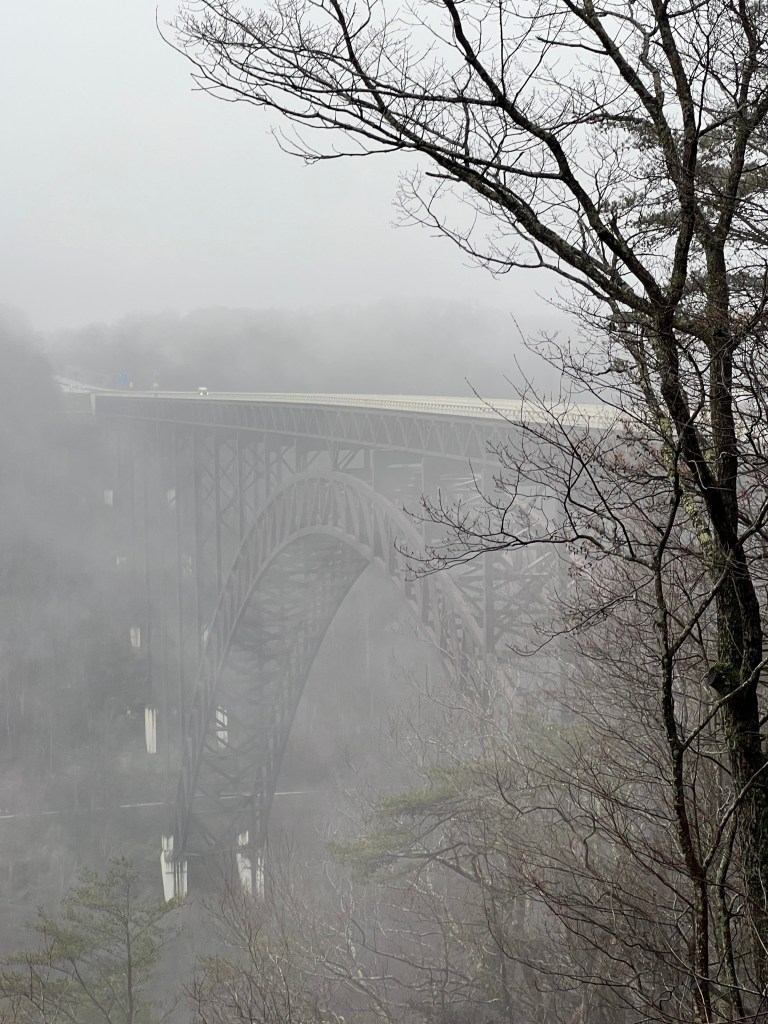 West Virginia is beautiful, and the National Park is incredible. We spent the morning exploring the gorge. We drove down into the gorge on one side of the mountain, and back up and out on the other side. It was a foggy, rainy day which made everything even more peaceful and beautiful. We drove over the New River Gorge Bridge on Hwy 19 which is 876 feet tall and 1,700 feet long. To give you a better idea of the height of this monstrous bridge, it’s taller than the Seattle Space Needle, and just shy of the Eiffel Tower. I can’t wait to go back and spend a few days exploring more. After doing more reading on this National Park, I think I’d like to go back for some primitive camping. New River Gorge is officially my first National Park. This is a definite recommendation, and I can’t wait to see more.