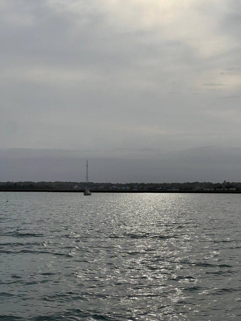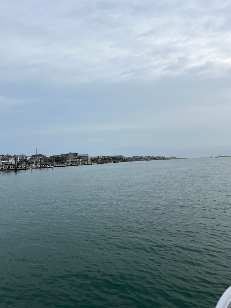 Breakfast was at the house on day 6. This is the benefit of staying in an Airbnb. Our Wilmington Airbnb, supplied all of the necessities to cook all of our meals at the house. They even had a grill on a private backyard patio. We prefer to go out for dinner while on vacation but stopped for groceries when we arrived to cook some of our meals at the house. After breakfast, we headed over to Wrightsville Beach. The weather while we were in Wilmington was on the chilly side, and we unfortunately, didn’t get any successful beach days, but we did find a captain to take us on the water for a tour. While researching tours, we found a company that we were interested in, but they didn’t have any tours that would fit into our plans. Something I’ve learned is to always reach out anyway. If they’re available, they’ll call you back. Sure enough, we received a call back by lunch and had a private tour set for 6:00 pm. The tour guided us through the inlets between Wrightsville Beach and the Atlantic Ocean while offering some history and interesting facts about the area. After the tour, we watched the sunset on the most southern point of Wrightsville beach and collected some beautiful seashells. Lunch was at Bluewater Grill where I realized how amazing shrimp and grits are, and a Seafood boil for dinner where we all learned crawfish isn’t something we need to try again. Day 6 ended up being pretty great despite the chilly weather.