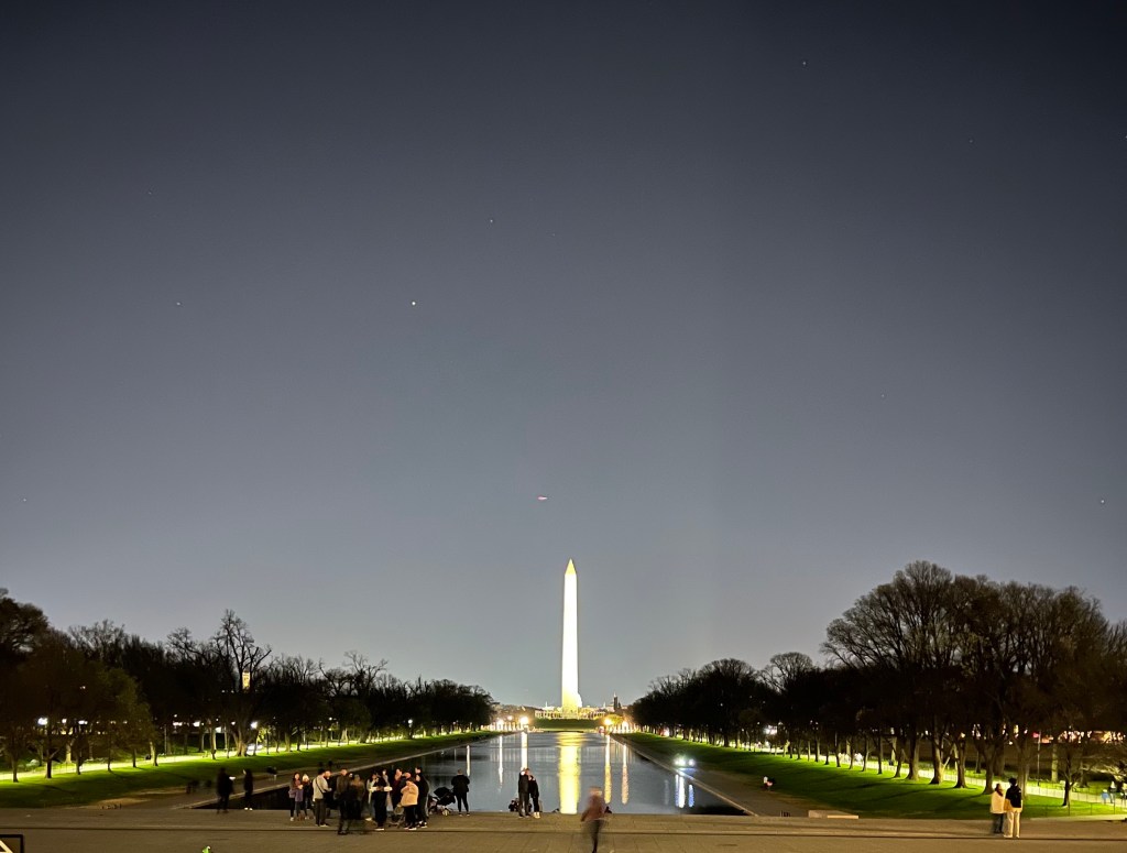 We walked around the Smithsonian National Museum of Natural History, which was amazing, and got a $75 dinner from their cafeteria (nope not worth it even if you’re famished). Yes, we saw the cherry blossom trees. They were beautiful! We booked a night tour of DC, and this made the pit stop worth every minute. Seeing DC lit up at night is beautiful, and our tour guides were awesome. After the tour, we did some late-night shopping at the metro shop and the owner was so happy we kept our promise to return, he gave us all free merch to go along with what we purchased. Seriously, nicest guy in DC! We took an Uber back to our hotel, door dashed a late-night pizza, and rested up for the trip home on Saturday. I loved seeing DC, but there were SO MANY PEOPLE.